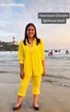 Fitted waistcoat with tie-up at back to adjust waist with straight pants with pockets.