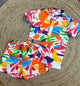 Multi abstract printed shirt shorts set