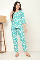 White Blue Jaipuri Printed Kurta Pant Set