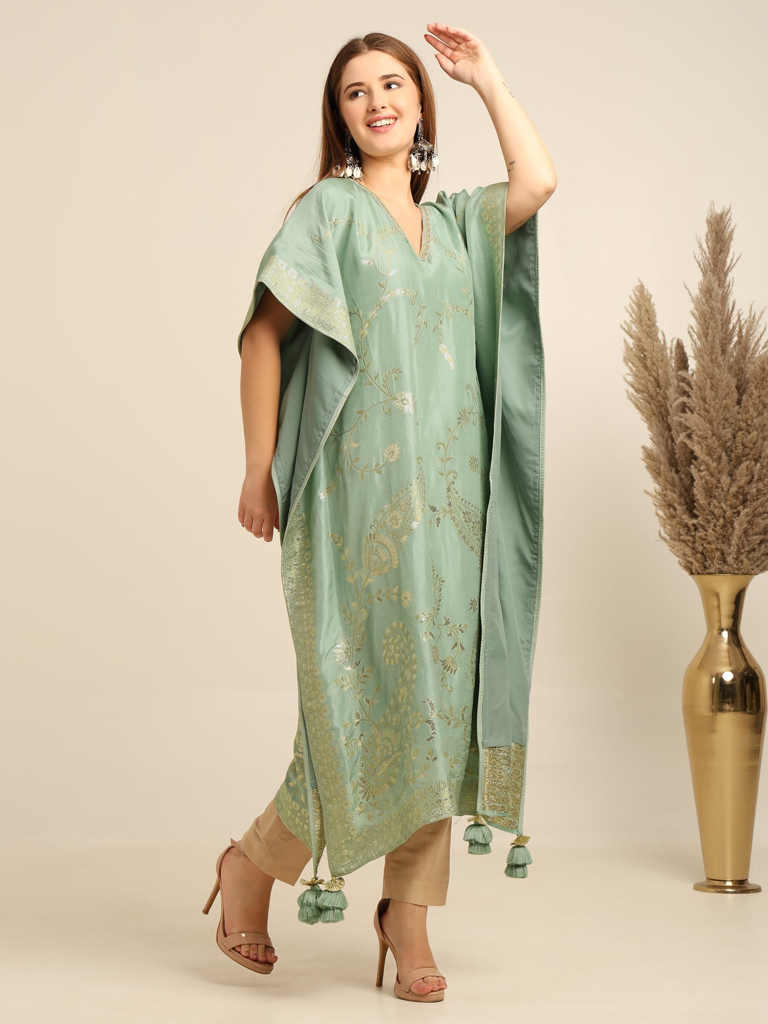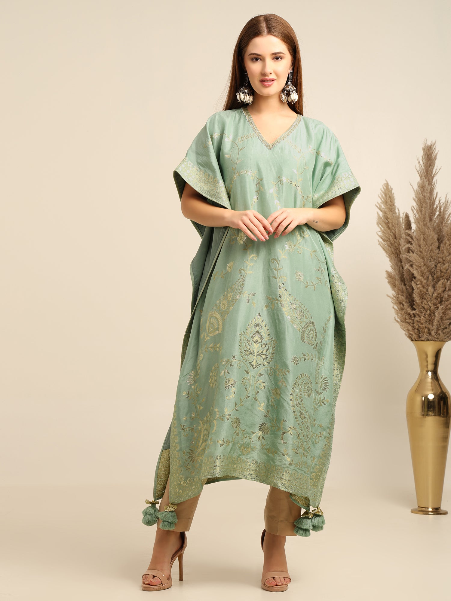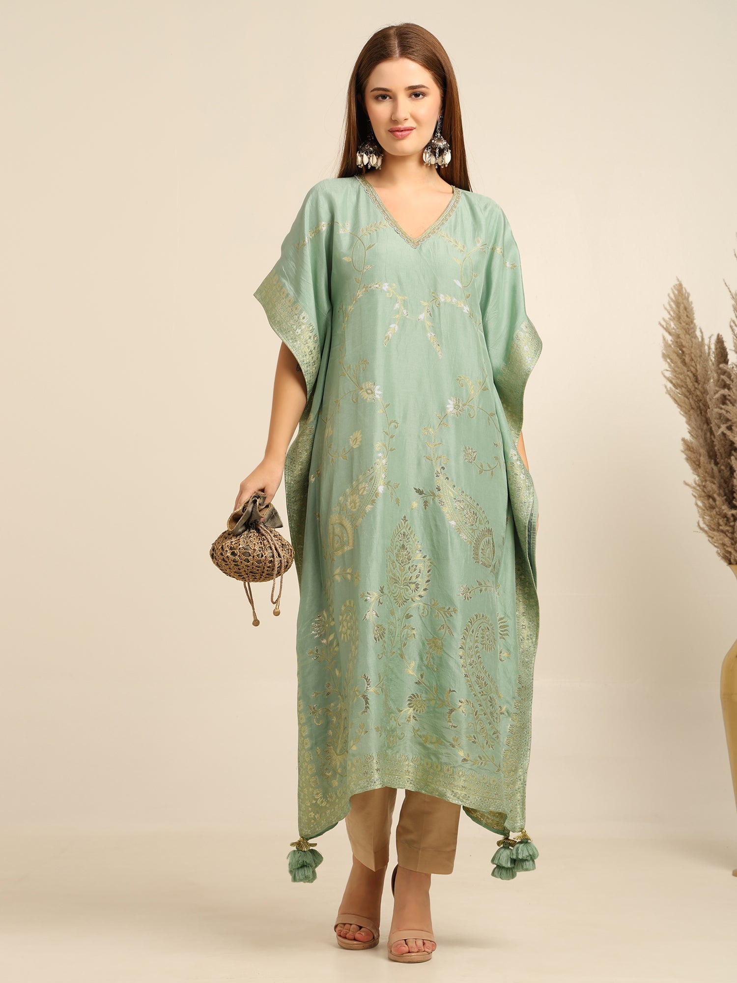 Mint Green georgette banarasi Kaftan kurta pant set