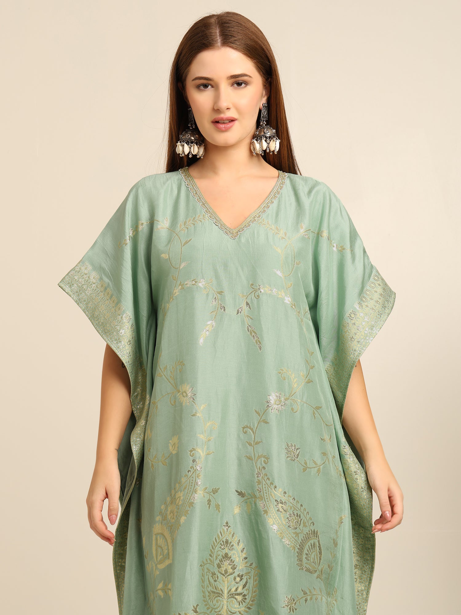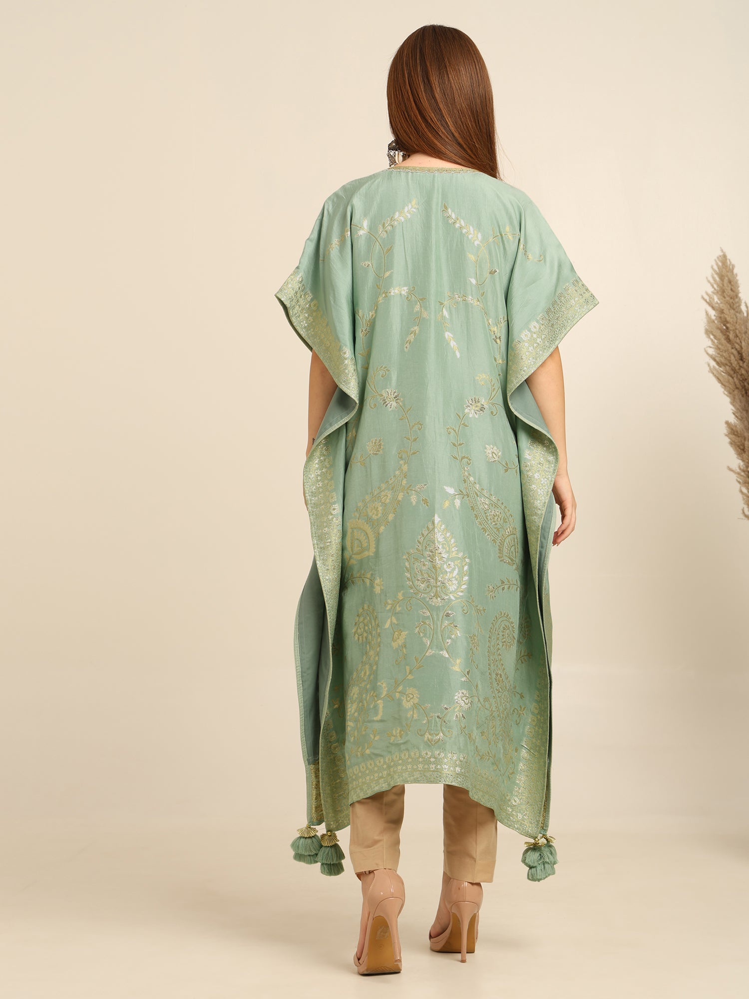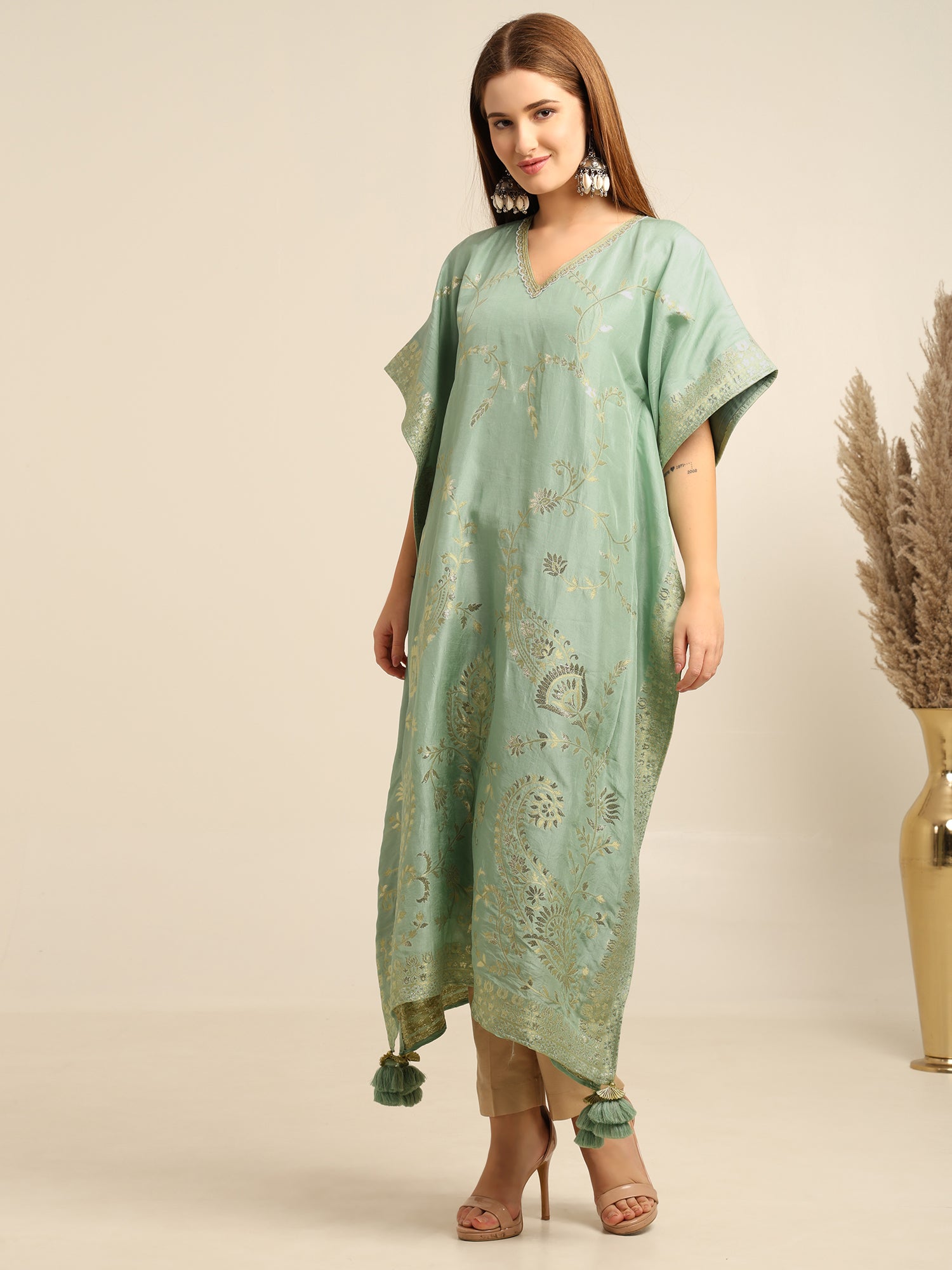 Mint Green georgette banarasi Kaftan kurta pant set
