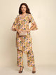 Slight A-line Asymmetric kurta with straight pants with lace detailing.
