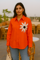 Aqua Blue Cotton Shirt with Croatia Flower Patch