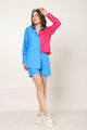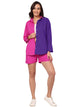 Loose straight fitted top with collar and style packet at side. Shorts are elasticated and front zipper and button closure with side slit pockets.
