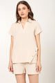 Loose two color boyfriend shirt with regular fitted Shorts with pockets.