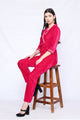 Velvet above knee length kurta with gotta detailing on collar and cuff with straight pants with pockets